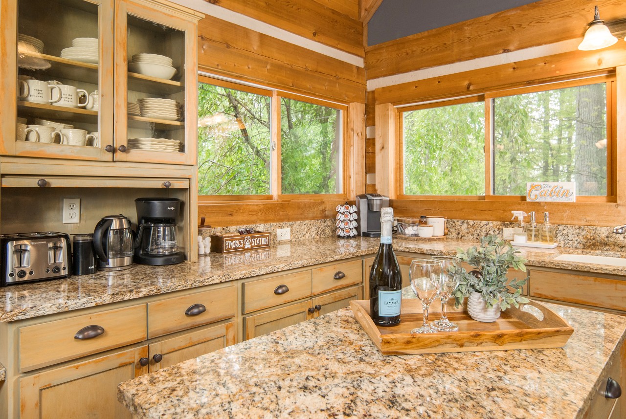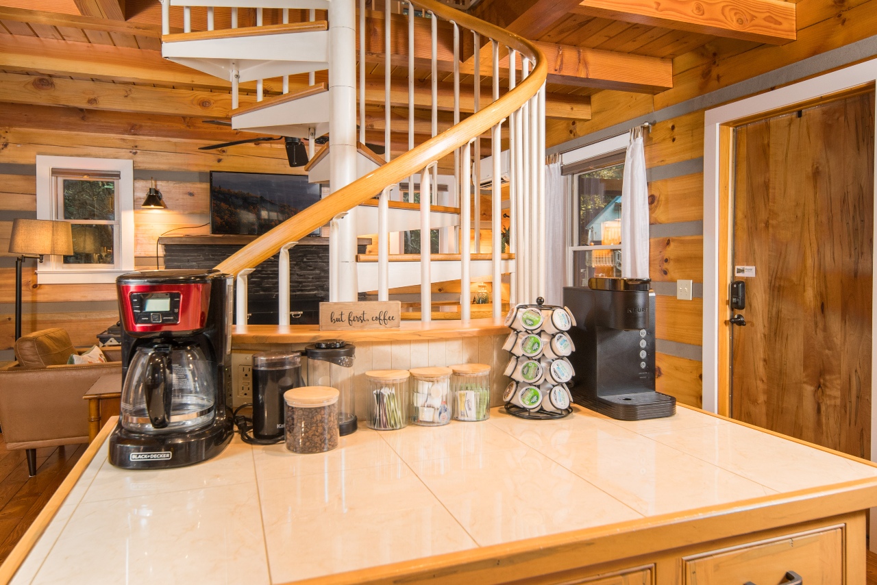 - Amenities: Air conditioning, Coffee Maker, Convection Oven/Microwave, Dining area, Fireplace, Flat-screen TV, Free parking, Free WiFi, Hot Tub, Induction Cook Top, Keurig, Kitchen and Dining, WiFi